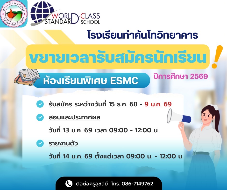 📣 ประกาศ! ⏰ขยายเวลารับสมัครนักเรียน “ห้องเรียนพิเศษ ESMC”